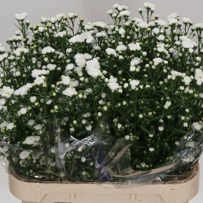 Eine frische weiße Aster mit gefüllten Blütenköpfen und langen, eleganten Stielen von etwa 80 cm - perfekt für hohe Vasen oder einen luftigen, schlanken Strauß. Jeder Zweig ist robust und leicht (ca. 55 Gramm pro Zweig) und wird pro 25 Stiele geliefert, so dass Sie sofort einen schönen, üppigen Strauß in Ihrem Haus haben. Diese Blume ist Teil der Freshy-Blumenkollektion, genauer gesagt unter Freshy-Blumen A - C, und passt genau in die Kategorie Aster (Aster).