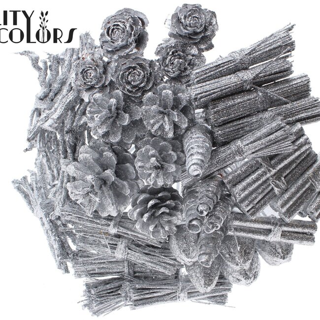 Eine funkelnde Mischung aus silberfarbenen Seitensteckern mit dezentem Glitzer, ideal, um Blumensträußen das gewisse Etwas zu verleihen. Jeder Strauß enthält 40 Stecker mit einer Länge von ± 50 Zentimetern, die stabil genug sind, um leicht in Blumenarrangements eingesetzt zu werden, aber leicht genug, um nicht zu dominieren. Diese Version stammt von QC und passt perfekt in Kategorien wie Floristikartikel, Seitenstecker, Bouquet Atelier, Sträuße und Home & Hobby.