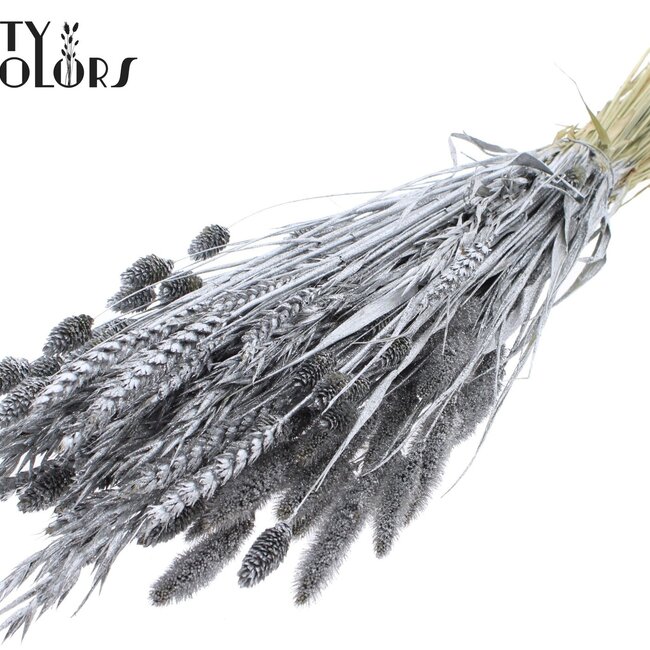 Ein fröhlicher und pflegeleichter Trockenblumenstrauß für alle, die Atmosphäre und dezenten Glamour lieben: Diese Mischung kombiniert getrocknete Rosen mit Mohn, Ginster, Ruscus und sonnigem Helichrysum für einen natürlichen, rustikalen Look mit silbrigem Glanz und zarten Glitzerakzenten. Durch die Kombination verschiedener Formen und Texturen entsteht ein lebendiges, langlebiges Arrangement, das seine Farbe und seinen Charme ohne Wasser und Pflege behält - perfekt für die Verschönerung Ihres Interieurs oder als bleibende, persönliche Note.