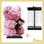 Ein niedlicher kleiner Bär aus Schaumstoffrosen mit einem kleinen Strauß in zartem Hellrosa, etwa 25 cm hoch und mit Ständer geliefert. Diese verspielte und elegante Kreation von 4A bietet den gleichen romantischen Look wie frische Rosen, aber ohne den Aufwand: Die Schaumstoffrosen bleiben farbecht, behalten ihre Form und verlieren keine Blätter, sodass sie lange schön bleiben.