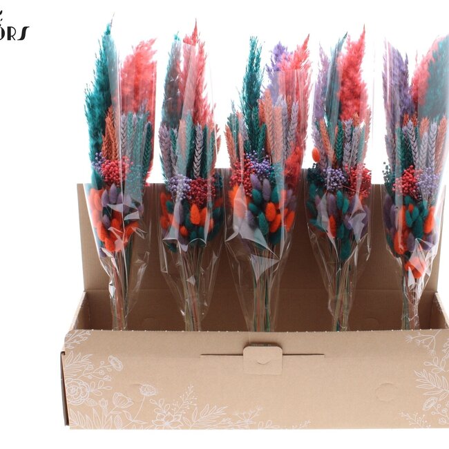 Bringen Sie Farbe und Atmosphäre in Ihr Zuhause mit unserem gestuften Trockenstrauß Colourful 4. Dieser kompakte 50-cm-Strauß passt in jeden Raum und erfordert keine Pflege. Ein dauerhaftes, fröhliches Geschenk! Lesen Sie mehr.