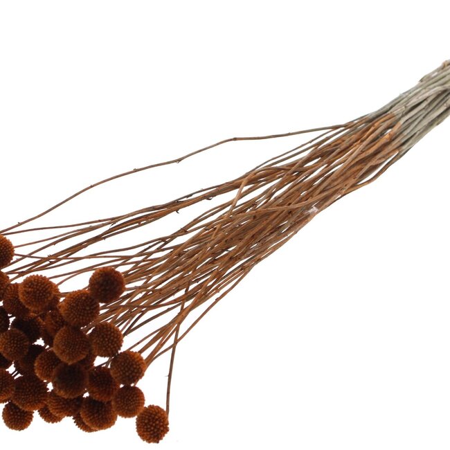 Diese auffällige braune Craspedia von QC wird pro Strauß mit 10 Zweigen geliefert, die jeweils etwa ±70 cm lang sind. Sie hat diese charakteristischen knolligen Köpfe, die jedem Strauß sofort Struktur und Verspieltheit verleihen. Die warme, satte Farbe bleibt auch nach dem Trocknen schön erhalten, so dass Sie eine pflegeleichte, langlebige Dekoration genießen, die sowohl in einer schlanken Vase als auch in einem üppigen Strauß gut aussieht. Sie finden diesen fröhlichen Trommelstock unter Trockenblumen A - E, Trockenblumen und speziell unter Craspedia (Trommelstock).