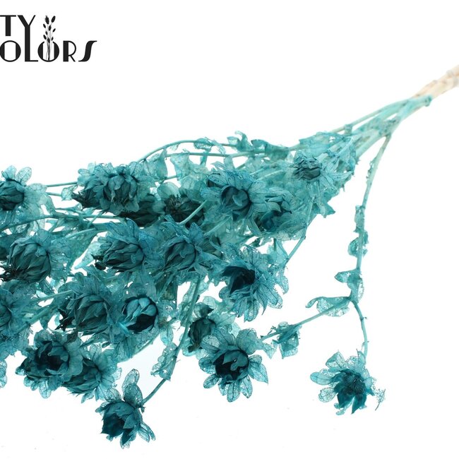 Dieser gebleichte Karthamus in einem leuchtenden Türkiston von QC bringt sofort Farbe und Charakter in Ihr Interieur, ohne viel Aufwand. Es handelt sich um getrocknete Färberdisteln / Bidens, die pro Strauß geliefert werden und etwa ± 70 Zentimeter lang sind - perfekt für eine hohe Vase oder als auffälliger Akzent in einem gemischten Strauß; entdecken Sie mehr unter Carthamus (Safflower).