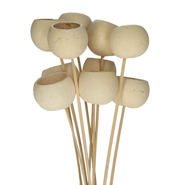 Natürliche getrocknete Bellgums von 4A bringen eine warme, zeitlose Atmosphäre in Ihr Zuhause, ohne dass Sie sich darum kümmern müssen. Die unverwechselbare Glockenbecherform und die sanften, natürlichen Farbtöne halten lange und erfordern kaum Pflege. Damit eignen sie sich perfekt für eine Vase auf der Fensterbank, einen dezenten Akzent auf dem Sideboard oder als elegante Ergänzung zu einem kleinen Blumenstrauß. Jeder Strauß enthält 10 Seitenzapfen, so dass Sie problemlos mehrere Stellen in Ihrer Wohnung schmücken können.