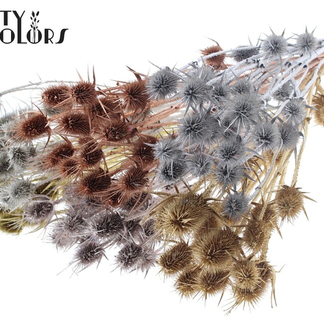 Verleihen Sie Ihrem Interieur Charakter mit der metallischen Kardendistel. Diese getrockneten Zweige sind pflegeleicht und perfekt für eine stilvolle Vase oder einen wilden Strauß. Entdecken Sie nachhaltige Dekoration! Lesen Sie mehr.