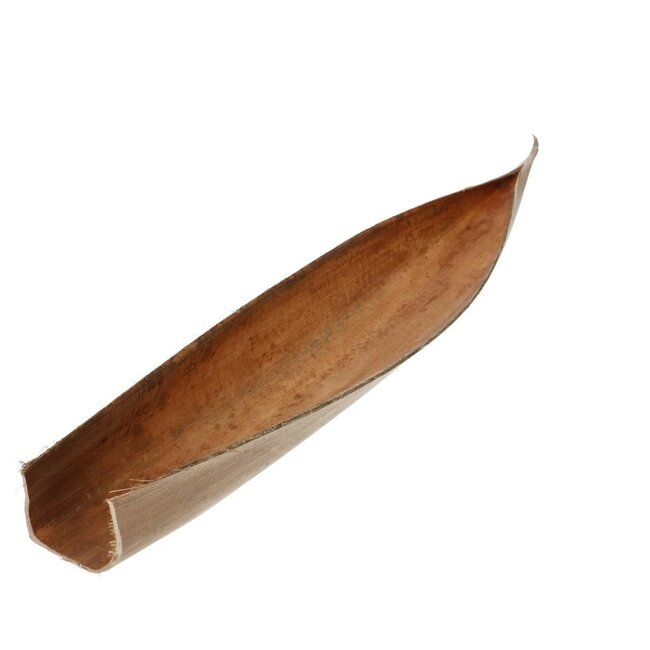 Dieses große, schiffsförmige Blatt aus getrockneter Kokosnuss verleiht Ihrem Interieur ohne viel Aufwand sofortigen Charakter. Der tiefbraune Farbton und die natürliche Maserung sorgen für eine warme, strukturierte Note in einer hohen Vase, auf einem Beistelltisch oder als Teil einer rustikalen Wanddekoration. Jedes Blatt wird als Einzelstück verkauft und hat eine Länge von ca. 60-80 Zentimetern - perfekt, wenn Sie einen Blickfang suchen, der lange hält. Da das Blatt getrocknet ist, können Sie seinen natürlichen Charme und seine Farbe ohne Wasser und Pflege genießen - ideal für alle, die ein dauerhaftes Ergebnis anstreben.
