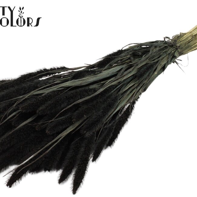 Diese langgestreckte, schwarz gefärbte Setaria bringt mit ihrem robusten, natürlichen Aussehen sofort Atmosphäre in Ihr Zuhause. Sie stammt aus QC und gehört zu den Trockenblumen und Trockenblumen P - Z. Sie gehört zu der charmanten Auswahl an Setaria (Fuchsschwanz), die sich hervorragend als pflegeleichter Blickfang in einer hohen Vase oder als Akzent zwischen anderen Trockenblumen eignet.