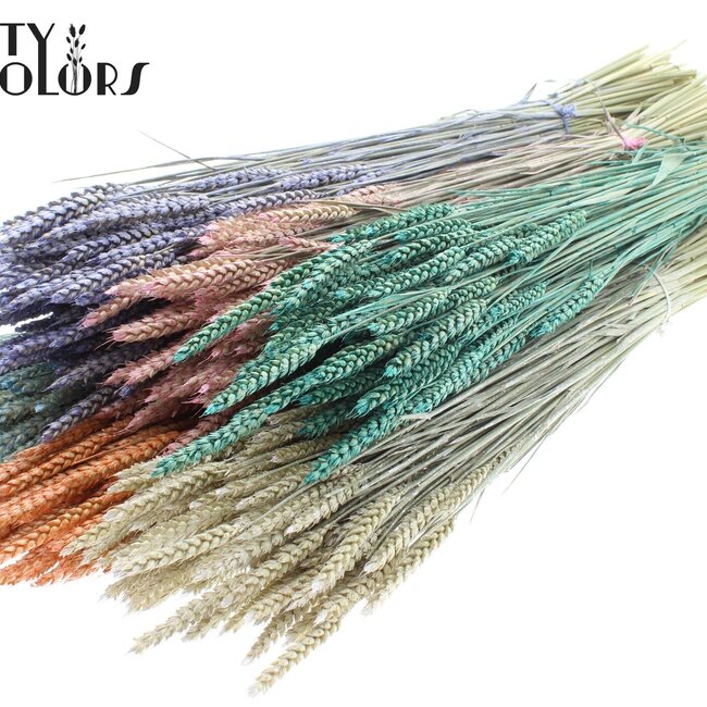 Weiche, getrocknete Triticum-Stängel in einem warmen Pearl Mix. Perfekt für rustikale Dekorationen, pflegeleicht und stilvoll. Ideal zum Kombinieren mit anderen Trockenblumen! Lesen Sie mehr.