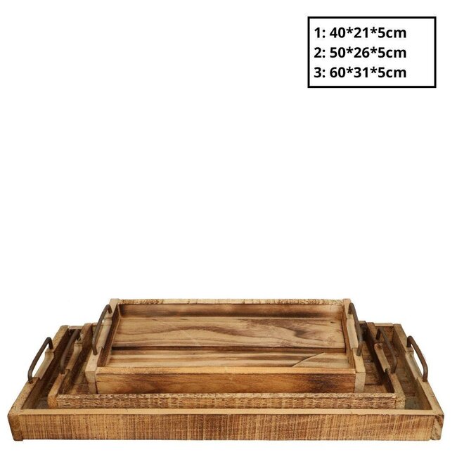 Diese robusten Holztabletts von Sturdy bringen sofort Wärme in Ihr Interieur: in einem natürlichen Braunton und im 3er-Set sind sie ideal, um verschiedene Ecken stilvoll zu dekorieren. Mit einer Länge von 60 cm, einer Breite von 31 cm und einer Höhe von 5 cm bieten sie ausreichend Platz für eine Sammlung von Trockenblumen wie getrocknete Rosen, Mohn, Ginster, Ruscus oder Helichrysum, aber auch für ein Kerzenset, eine hübsche Vase mit Seidenblumen oder eine gemütliche Kaffee-Ecke. Die von 4A hergestellten Tabletts verbinden praktische Robustheit mit einem zeitlosen Look und passen perfekt in die Bereiche Haus, Garten & Deko und Haus & Hobby; sie sind langlebig, einfach zu gestalten und verleihen jedem Ort sofort einen eleganten, natürlichen Touch.