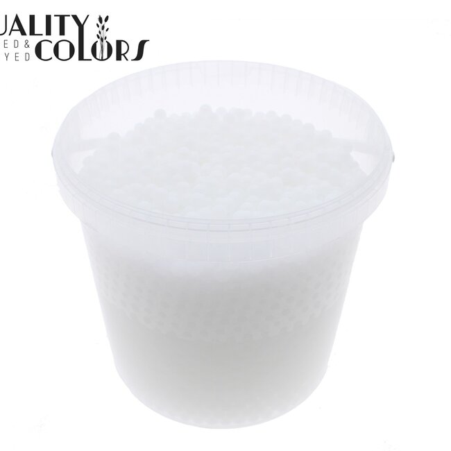Kleine, funkelnde weiße Hydrogelperlen von ca. 2,5-3 mm in einem praktischen, wiederverwendbaren Eimer verleihen Ihrem Zuhause sofort einen frischen, modernen Touch. Dieses Produkt von QC fällt unter Floristikbedarf und Heim & Hobby und gehört zur Kategorie Gel- und Wasserperlen. Die Perlen quellen mit Wasser auf, bleiben wunderschön durchscheinend-weiß und speichern die Feuchtigkeit, was sie ideal für dekorative Vasen und einfache, pflegeleichte Arrangements macht.