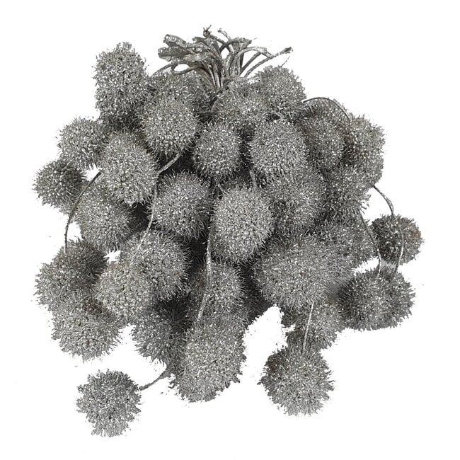 Verleihen Sie Ihrer Einrichtung mit diesen silbernen Glitzerkugeln an Stäben Glanz! Perfekt für Vasen, Blumensträuße und DIY-Kreationen. Wartungsfrei und langlebig, 10 Stück pro Strauß. Lesen Sie mehr.