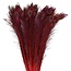Ein Set mit 100 cm langen Pfauenfedern in tiefem Rot, die pro 10 Federn geliefert werden und Ihrem Interieur oder kreativen Projekt sofort einen auffälligen und eleganten Akzent verleihen. Diese langen, zierlichen 4A-Federn haben eine satte Farbe und eine natürliche Textur, die nicht verwelkt. Sie eignen sich daher perfekt für Dekorationen, Trockenblumensträuße oder als auffälliger Blickfang in einer Vase.