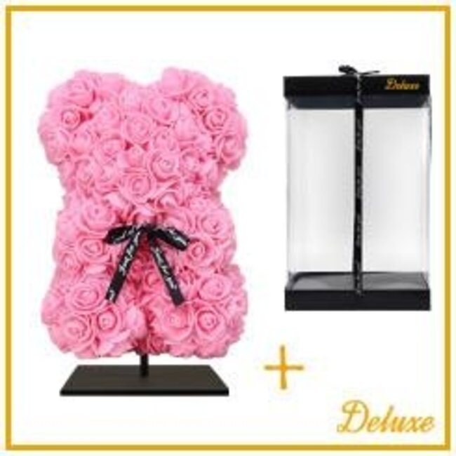 Ein Plüschtier voller Blumen: Dieser Bär besteht komplett aus weichen hellrosa Schaumstoffrosen, die erstaunlich natürlich aussehen und ihre Farbe lange behalten. Da die Schaumstoffblumen pflegeleicht und robust sind, bleibt dieses fröhliche Stück ein dauerhafter Blickfang in der Wohnung; es wird pro Bär geliefert und verfügt über einen Ständer, ideal für ein Sideboard, einen Nachttisch oder als dauerhafte Dekoration im Wohnzimmer.