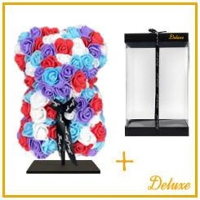 Dieser niedliche Bär aus Schaumstoffrosen vereint Verspieltheit und Eleganz: Ein Mix aus lila und rosa Schaumstoffrosen bildet den Körper, er steht auf einem kleinen Sockel und ist etwa 25 Zentimeter groß - ideal als dekoratives Schaustück oder als liebevolles Geschenk, pro Bär. Die Schaumstoffblumen von 4A behalten ihre leuchtenden Farben und ihre Form auch ohne Wasser und Pflege, so dass man lange Freude an den Blumen hat, ohne sich um sie kümmern zu müssen.