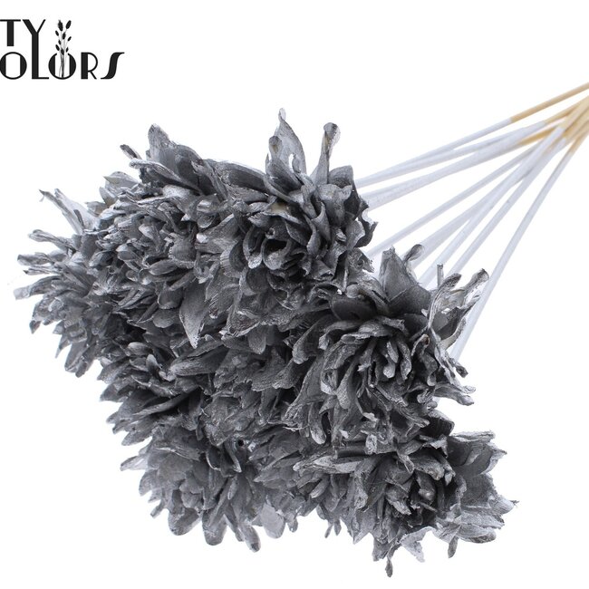 Diese silberfarbene Shola-Kiefernblüte am Stiel verleiht Ihrem Interieur einen raffinierten, natürlichen Touch, ohne dass Sie sich darum kümmern müssen: leicht, stilvoll und dauerhaft schön. Der handgefertigte Shola Slice Pine Seitenstecker hat eine Blüte von ca. 6 cm und einen Stiel von ±50 cm, so dass Sie ihn leicht in eine Vase, einen Kranz oder einen Strauß einfügen können, um Höhe und Struktur hinzuzufügen; pro Strauß erhalten Sie 10 Seitenstecker. Als Teil der Kunstblumenkollektion und der Shola Flowers-Linie ist dieser Artikel perfekt für alle, die eine langlebige, pflegeleichte Dekoration mit einem weichen, organischen Look suchen. Weitere Informationen über die Marke finden Sie unter QC, und entdecken Sie ähnliche Artikel in der Kategorie Slice Pine.