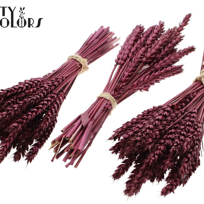 Bringen Sie Wärme und Charakter in Ihr Interieur mit diesem burgunderroten Mini-Weizen. Perfekt für Vasen und kreative Projekte, pflegeleicht und immer schön! 10 Sträuße für endlose Möglichkeiten. Lesen Sie mehr.