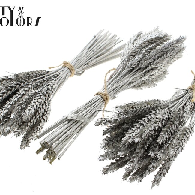Kompakte Sträuße aus Mini-Weizen (Triticum) mit einer Größe von ca. 25 cm, die in einem Set von 10 Sträußen geliefert werden - perfekt für alle, die langlebige, pflegeleichte Blumen mögen. Die dezente Platinfarbe bleibt lange schön und sorgt für einen modernen, natürlichen Touch, der mühelos in Trockenblumensträuße, Trockenblumen und Sträuße passt; weitere Informationen finden Sie unter Triticum (Weizen).
