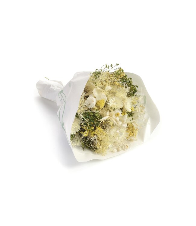 Farfalla Bianco Giallo ist ein luftiger Trockenstrauß mit weißen und hellgelben Blumen. Perfekt für jedes Interieur, pflegeleicht und ein eleganter Blickfang für dein Zuhause. Lesen Sie mehr.