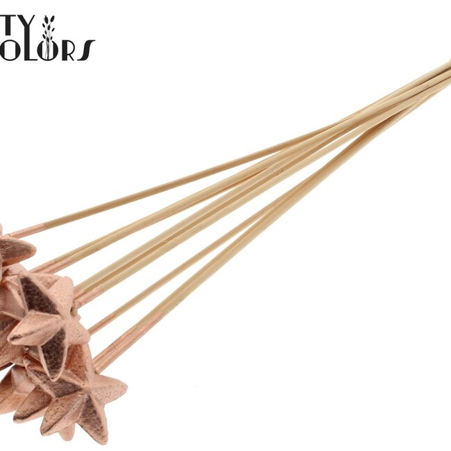 Ein verspielter und leichter Stern am Stiel, perfekt für alle, die ihrem Zuhause oder ihren Geschenken eine schlichte Atmosphäre verleihen möchten. Diese flachen Styro Star-Seitenstecker der Marke QC haben eine warme kupferfarbene Farbe und eine Länge von ca. 50 Zentimetern. Sie werden in einem Set mit 50 Seitensteckern geliefert - ideal, wenn Sie mehrere Tische, Blumensträuße oder Heimwerkerprojekte ohne großen Aufwand aufpeppen möchten.