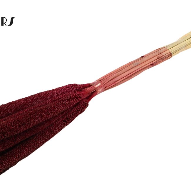 This bordeaux red pearl millet instantly brings warmth and character into your home without any fuss: long, slender stems of approximately 65 cm, delivered in a bunch with 10 strong branches that retain their colour and shape for months. The natural texture of the pearls gives a subtly playful effect in a vase and combines beautifully with other dried flowers such as dried roses, poppy, broom, ruscus, and Helichrysum for a rich, layered bouquet that does not wilt.
