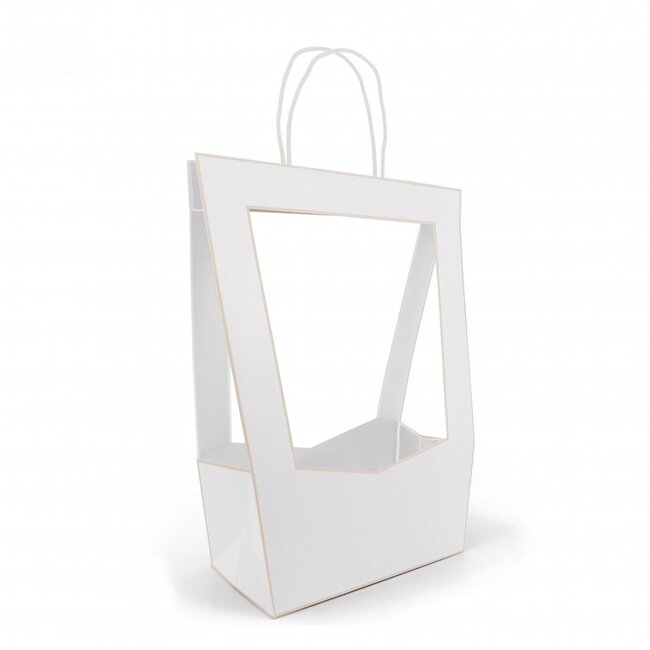Sleek, stylish and practical: these bags with a subtle médaillon motif in natural white give your gift wrappings an instant chic look. With dimensions of 23 x 14 x 38 centimeter and supplied per set of 5 bags they are sturdy enough for small presents, sweets or bouquets and stand neatly thanks to the good quality paper and finished handles. At MyFlowers you will find this variant from the brand 4A, perfect as a stylish and sustainable choice that looks cared-for without fuss.