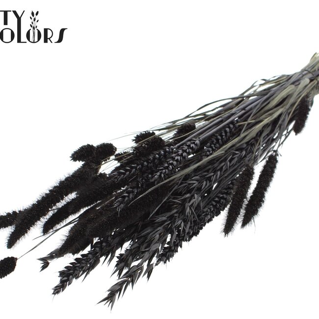 This black-coloured mix of dried flowers instantly brings character into the home without any fuss: a bold combination with dried roses, poppy, broom, Ruscus, and Helichrysum that together offer a longer lifespan and natural charm than fresh flowers. The bouquet of approximately ±60 cm is ideal for placing in a tall vase or as a beautiful accent on a side table; colourfast, low-maintenance, and perfect for those looking for an elegant yet sustainable touch in the living room or bedroom. This Dried Flower Bouquet is part of the Signature (€15 - €30) collection and fits nicely within the categories Bouquets and Dried Flower Bouquets, and is carefully composed by QC for a stylish, long-lasting eye-catcher.