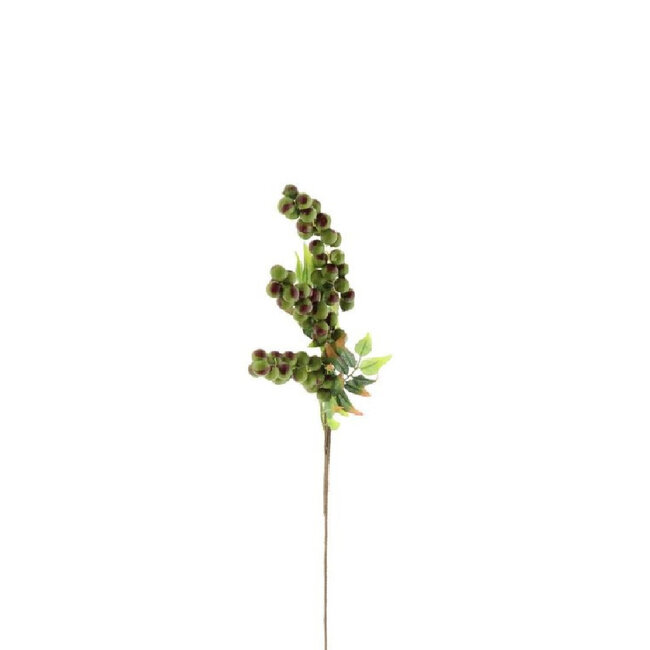 A set of six elegant branches with charming 'sugar' artificial fruit in a fresh green shade, each approximately 80 cm long, perfect for bringing atmosphere into your home without any hassle. The realistic details and matte sheen provide that natural look of real berries, while the sturdiness of the branches ensures they remain beautiful for a long time — ideal for those who love low-maintenance, sustainable decoration. This item effortlessly complements collections such as Art & Silk Top 10, Silk Branches and Flowers & Branches and comes from the trusted brand 4A.
