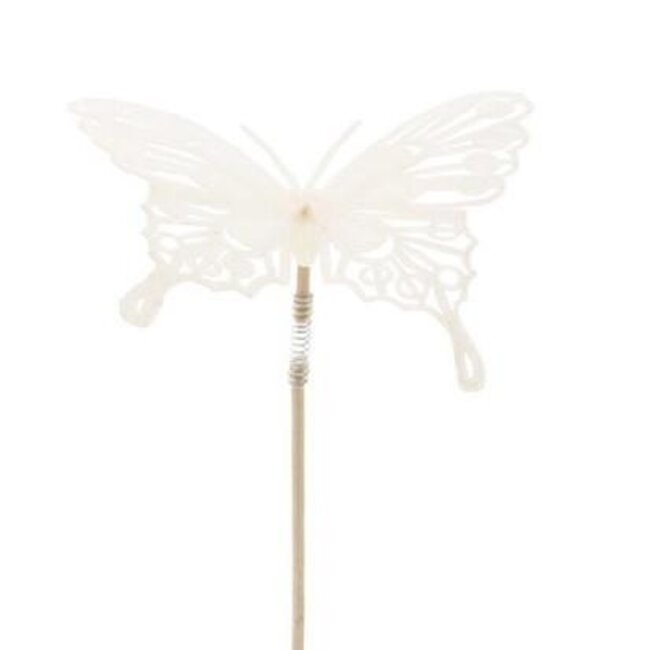 An airy butterfly on stem in natural white immediately adds a playful and elegant accent to small vases, dried flower mixes or silk arrangements. This butterfly from 4A is finely flocked for a soft, almost velvety appearance; with a diameter of approximately 8 cm and a stem of ±50 cm it stands out without overpowering and is delivered per 25 picks. You can find this kind of cheerful accents under Picks and in the categories Floristry supplies and Home & Hobby.
