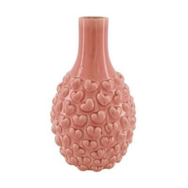 This charming light pink vase with subtle hearts is a playful and elegant addition to your interior. Made of sturdy ceramic by 4A, it has an opening of 4 centimeter, a width of 21,5 cm and a height of 35,5 cm — just enough presence to stand out without overwhelming. Thanks to the durable material the vase retains its colour and shape, making it ideal for special occasions such as Weddings and heartwarming moments such as Mother's Day.