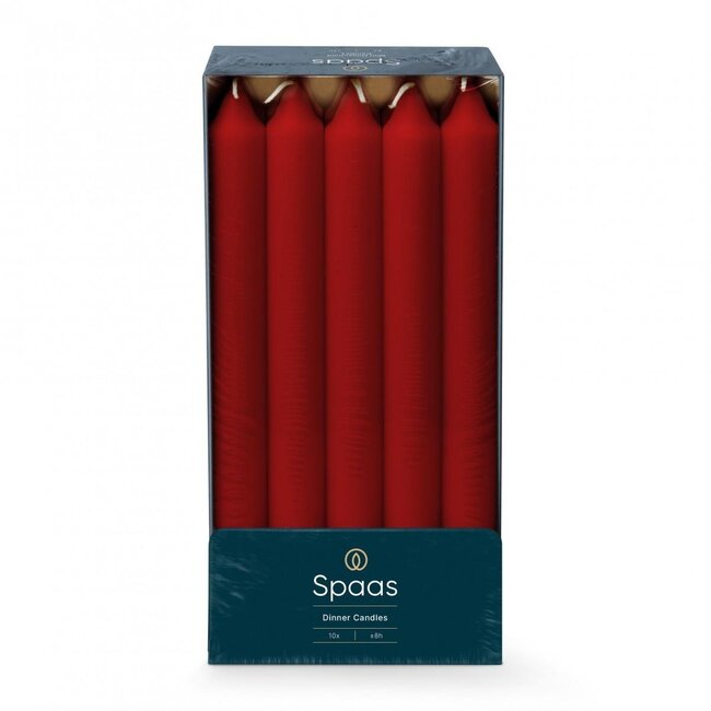 A set of ten slim, atmospheric table candles from 4A that instantly add warmth and colour to your interior. With a diameter of 2.1 cm and a length of 24 cm, they have an elegant, timeless shape; the deep red hue remains bright and adds a luxurious touch without being overpowering, ideal for dinners, in the coffee corner, or as a stylish addition to your favourite decorations.