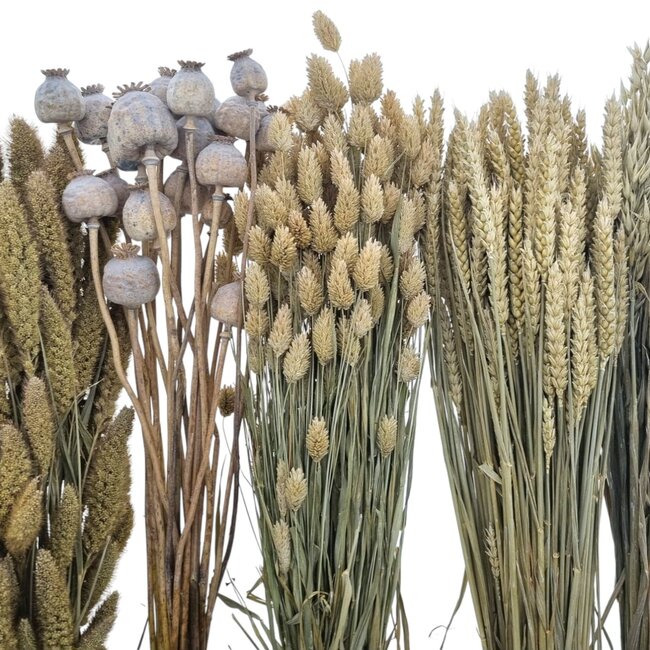 With this DIY set from MyFlowers, you bring home a carefully selected mix of dried flowers: soft dried roses, characterful poppy heads, airy broom, elegant ruscus twigs, and sunny Helichrysum that retain their colour and shape for a long time. The composition is ideal for anyone who enjoys combining materials themselves — from loose vase arrangements to small wreaths or personal bouquets — and it requires no water or much maintenance, just some time and creativity.