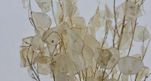 What makes Lunaria so special is its subtle shine and refined structure. The slender stems hold oval seed discs that develop a silvery, transparent look when dried. This turns Lunaria into a true eye-catcher, whether displayed solo in a vase or as part of a sophisticated floral arrangement. Thanks to its neutral, light-reflective nature, it adds atmosphere without overpowering the rest of the decor.