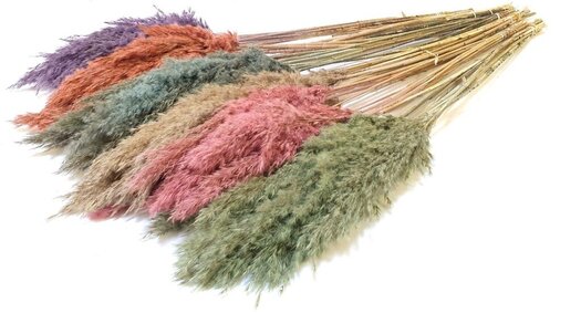 Pampas plumes are famous for their luxurious and fluffy appearance. They come in a range of colours, from natural beige to bold shades such as pink and green. Pampas plumes are ideal for creating a statement piece in your living room or an atmospheric touch in your bedroom. -