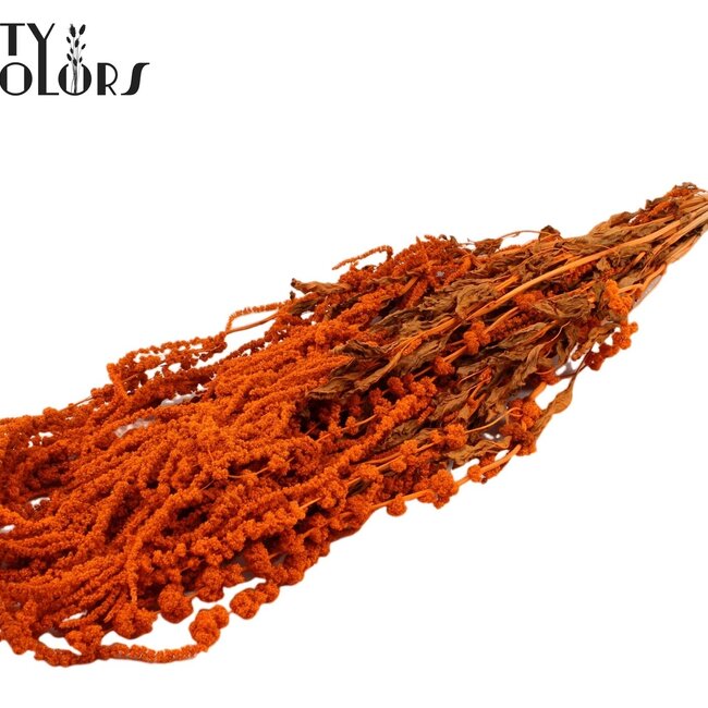 At QC, you can discover this dried hanging amaranthus in a warm orange hue — a playful variant of cat's tail dried flowers that instantly adds atmosphere to any space. This amaranthus falls under Dried Flowers A - E, Dried Flowers and Amaranthus (Amaranth), and comes in a bunch so you immediately have a full, casual eye-catcher for the table, in a hanging vase or as part of a wild bouquet.