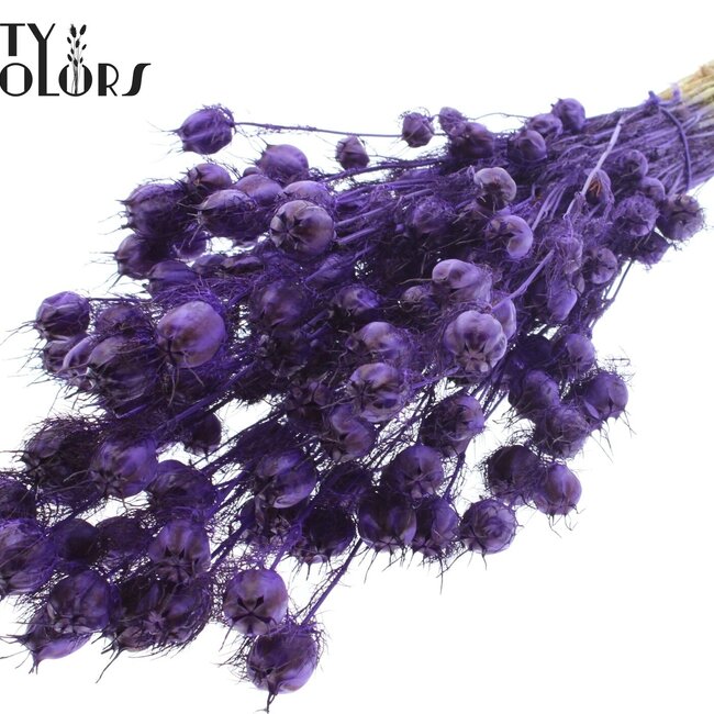 A light, airy bunch of dried Love-in-a-mist in a warm purple shade that instantly brings atmosphere to your home. This Nigella comes from QC and falls within the categories Dried Flowers and Dried Flowers F - O; you can find similar items at Nigella (Love-in-a-mist). The delicate seed pods and slender stems give a natural, almost poetic appearance and work beautifully in simple vases or as part of a bohemian bouquet.