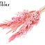 This flat, pink bouquet from QC brings a soft, natural look to your interior without any hassle. The bouquet includes dried roses, poppy, ruscus, Helichrysum, and a touch of broom for texture; each piece is carefully dried to retain its colour and shape. With a medium size of approximately 60 cm, it feels generous without being overwhelming and is delivered in sets of 5 bouquets, ideal if you want to refresh multiple spaces or create a cohesive set.
