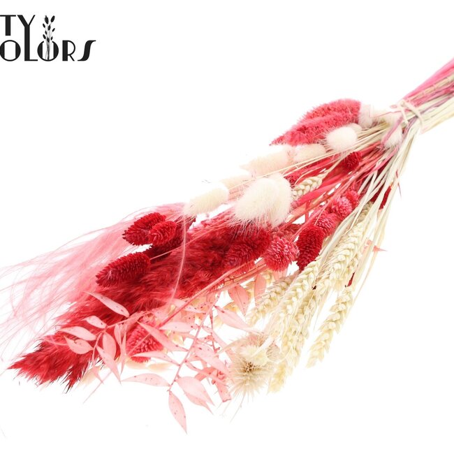 Discover the flat dried bouquet Ruby from QC, a small yet striking bouquet in warm red of approximately 50 cm, delivered in sets of 8 bouquets. Perfect within the category Dried Flower Bouquet, Dried Flowers and Bouquets, this piece instantly adds atmosphere to your interior without the hassle of maintenance or wilting.