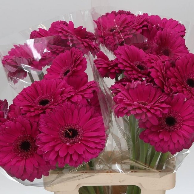 Deze vrolijke gerbera uit de Bon Dia-lijn van Freshy bursts with colour: deep red, fresh and full of character. With slender stems of approximately 65 cm and supplied in bunches of 10 stems you can quickly create a colourful eye-catcher that instantly brightens your table, windowsill or favourite vase. The large flower heads give a playful yet elegant feel and suit a variety of interior styles.