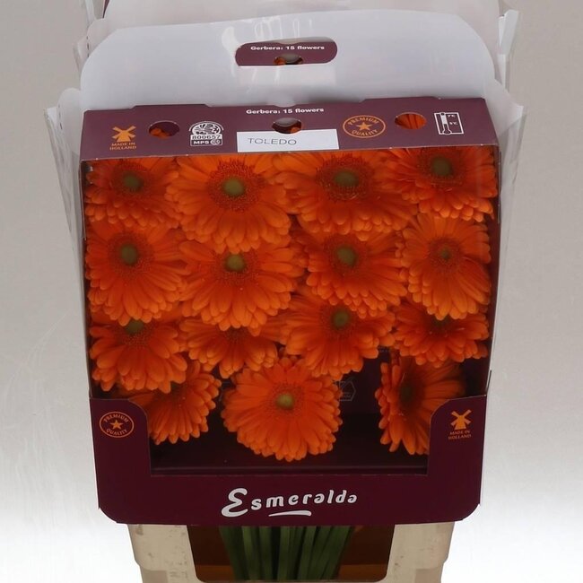 These cheerful orange gerberas from the Toledo line immediately bring colour and energy to any interior. At MyFlowers you can find these fresh specimens from Freshy, sorted under the categories Fresh flowers, Fresh flowers D - K and Gerbera (Gerbera), so you can be sure you are bringing a true quality flower into your home.