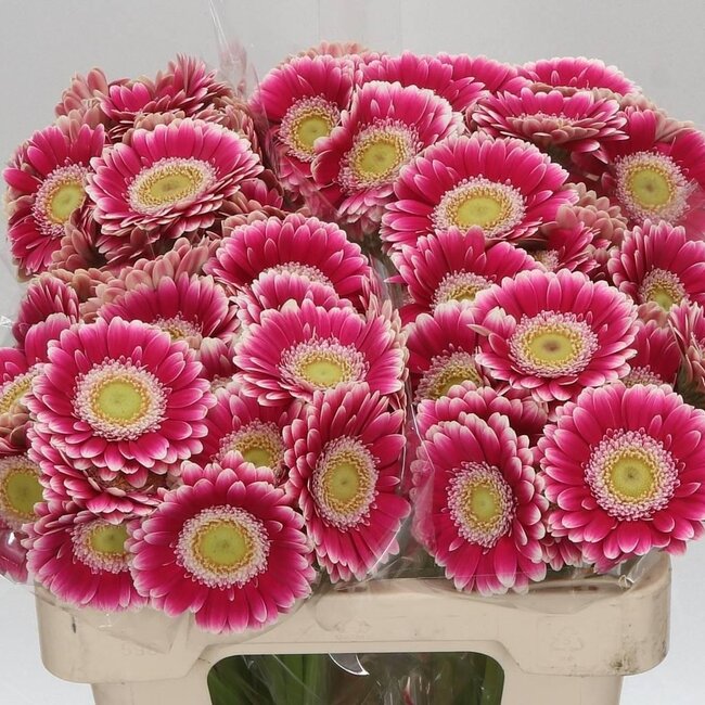 Deep-purple germinis with a fresh, modern look that immediately add atmosphere to your living room or dining table. This variant from Freshy stands out thanks to the full petals and the rich purple of each stem; perfect to mix with other Fresh flowers or as a striking element from the Fresh flowers D - K collection, and a fine representative of the Gerbera (Gerbera) Gerbera (Gerbera).