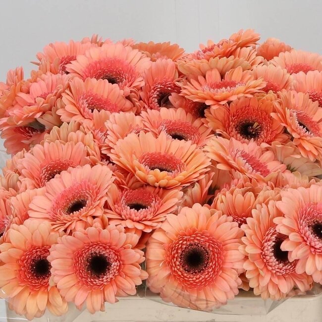 A cheerful and warm shade of orange instantly brings cosiness to the home; this Germini from the 'Cookie N Cream' series feels like a sunny cuddle in a vase. From the fresh flower head to the sturdy stem, the flowers have that playful, light appearance that makes you happy, and fit perfectly with the rest of the range from Freshy. This variety falls under the category Gerbera (Gerbera), so expect the recognisable cheerfulness and simple elegance that make gerberas so beloved.