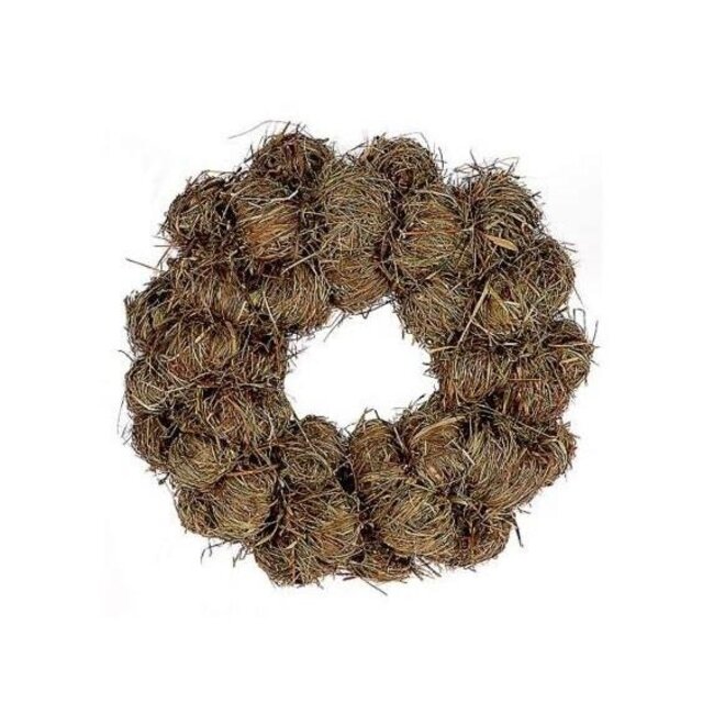 Deze warme, bruine krans van hooiballen geeft je huis meteen een gezellige, landelijke sfeer. Met een diameter van 30 cm is hij compact genoeg voor aan de deur, aan de muur of als rustieke tafeldecoratie; het natuurlijke materiaal blijft lang mooi en vergt geen onderhoud, dus je hebt er seizoen na seizoen plezier van. De organische textuur en zachte bruine tinten brengen direct karakter zonder dat het te gestyled voelt.