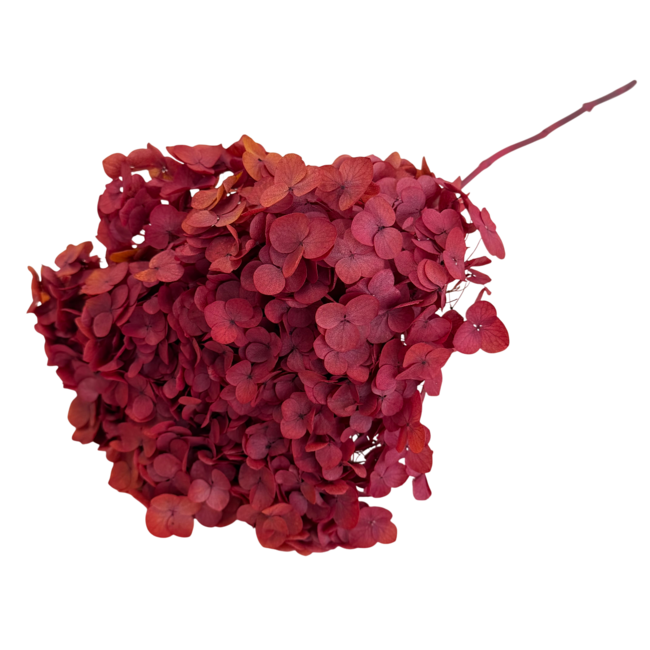 Perfect for those who love striking accents in their home: this hydrangea is durable, colourfast, and remains beautiful in a vase or combined in a bouquet. The rich red gives a simple shelf, side table, or corner of your home an instant stylish boost, while the natural texture of the flower provides that cosy, artisanal atmosphere that many people seek when styling their living space or creating a special gift for friends and family.