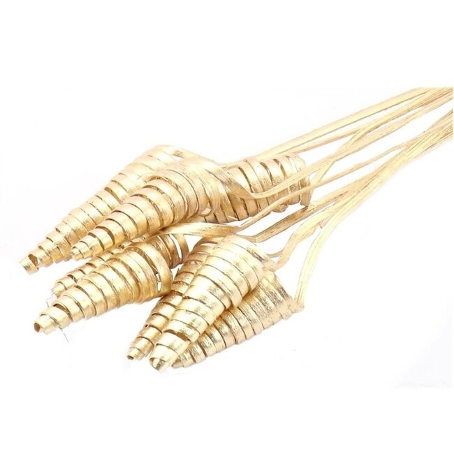 Instantly add more shape to your bouquets and table decorations with this gold-coloured palm spiral on a stem, a cane cone stake about 50 cm long, supplied in a set of 10. At MyFlowers, you can find this version from 4A, ideal for easily adding structure and height to dried or silk flowers without any hassle. This item fits perfectly within our Floristry Collection and is a smart addition in the Stakes category for anyone who loves to add playful, sustainable accents to their home.