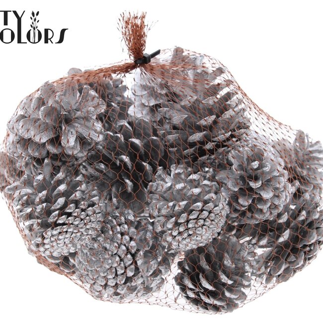 Pine Cones | Colour: Silver | Weight 500 grams per net | Per 4 nets