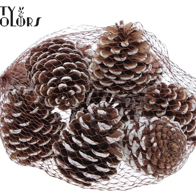 Pine Cones | Colour: White Tipped | Diameter 7 - 10 centimetres | 10 pieces per net | Per 4 nets