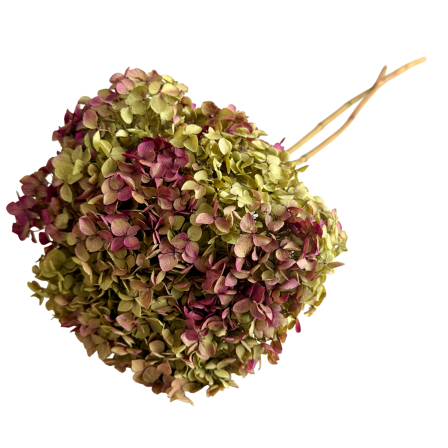 A soft, naturally looking Hydrangea Cabeza with a fresh mix of pink and green that instantly adds warmth and colour to your interior. The stem is light and easy to arrange (approximately ±50 centimetres long and about ±50 grams), making it perfect for a tall vase, a loose bouquet, or as a subtle accent on a table. Since these are preserved flowers, this hydrangea retains its shape and colour much longer than fresh material, with a softness and texture that still feels very natural.