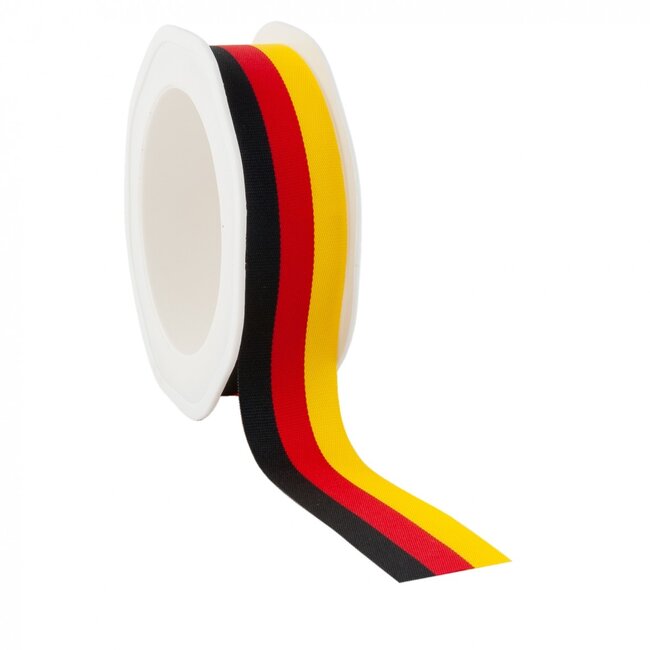 This cheerful German flag ribbon from the brand 4A instantly adds colour and character to any bouquet or gift. With a sturdy width of 25 millimetres and a striking black-red-yellow print, the colour remains vibrant, while the fabric feels pleasant and is easy to tie. Thanks to the neat finish, the ribbon hardly frays, making it perfect for table decorations, wreaths, or as a playful finishing touch in home accessories.