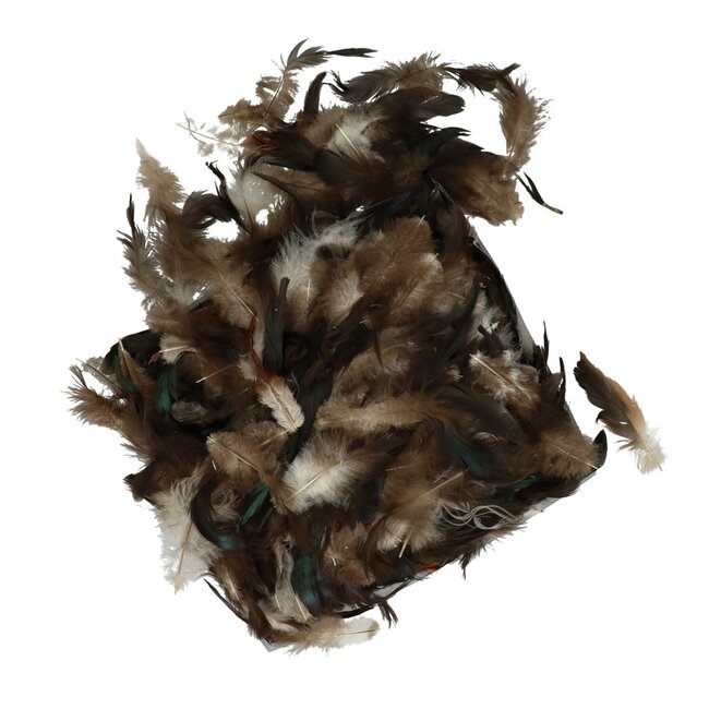 A cheerful bag of rooster feathers in warm brown-white shades from 4A, ideal for creative projects and subtle details at home. These rooster feathers, approximately 45 grams per bag, bring natural texture and playful movement to bouquets, table decorations, and craft projects, and fit perfectly within the categories Feathers, Floristry, and Craft Materials.
