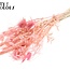 This cheerful, round dried bouquet from the QC line mixes soft pink tones with various textures: dried roses, poppy, broom, ruscus, and Helichrysum together create a playful yet elegant whole. The natural charm of the dried flowers remains visible for a long time, the colours stay vibrant, and they require hardly any maintenance—perfect for those who want to enjoy flowers without the fuss.